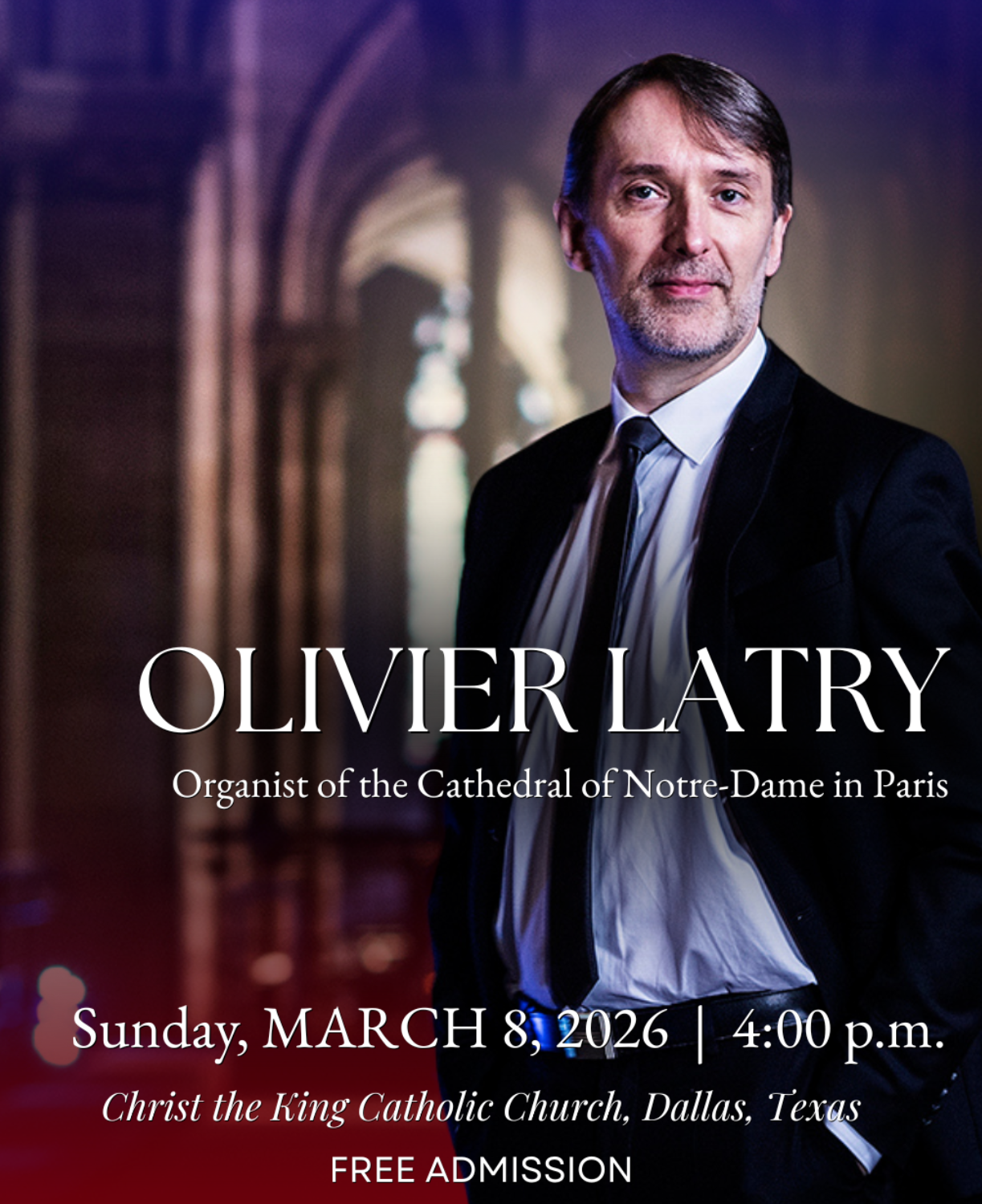 Christ the King Catholic Church proudly welcomes Olivier Latry, Organist of Notre-Dame Cathedral in Paris, for a recital Saturday, March 8 at 4:00 PM as part of the Dottie Thompson Concert Series. Experience electrifying French masterworks and a dazzling improvisation on the magnificent Juget-Sinclair pipe organ by one of the world's finest organists. Free admission. All are welcome.